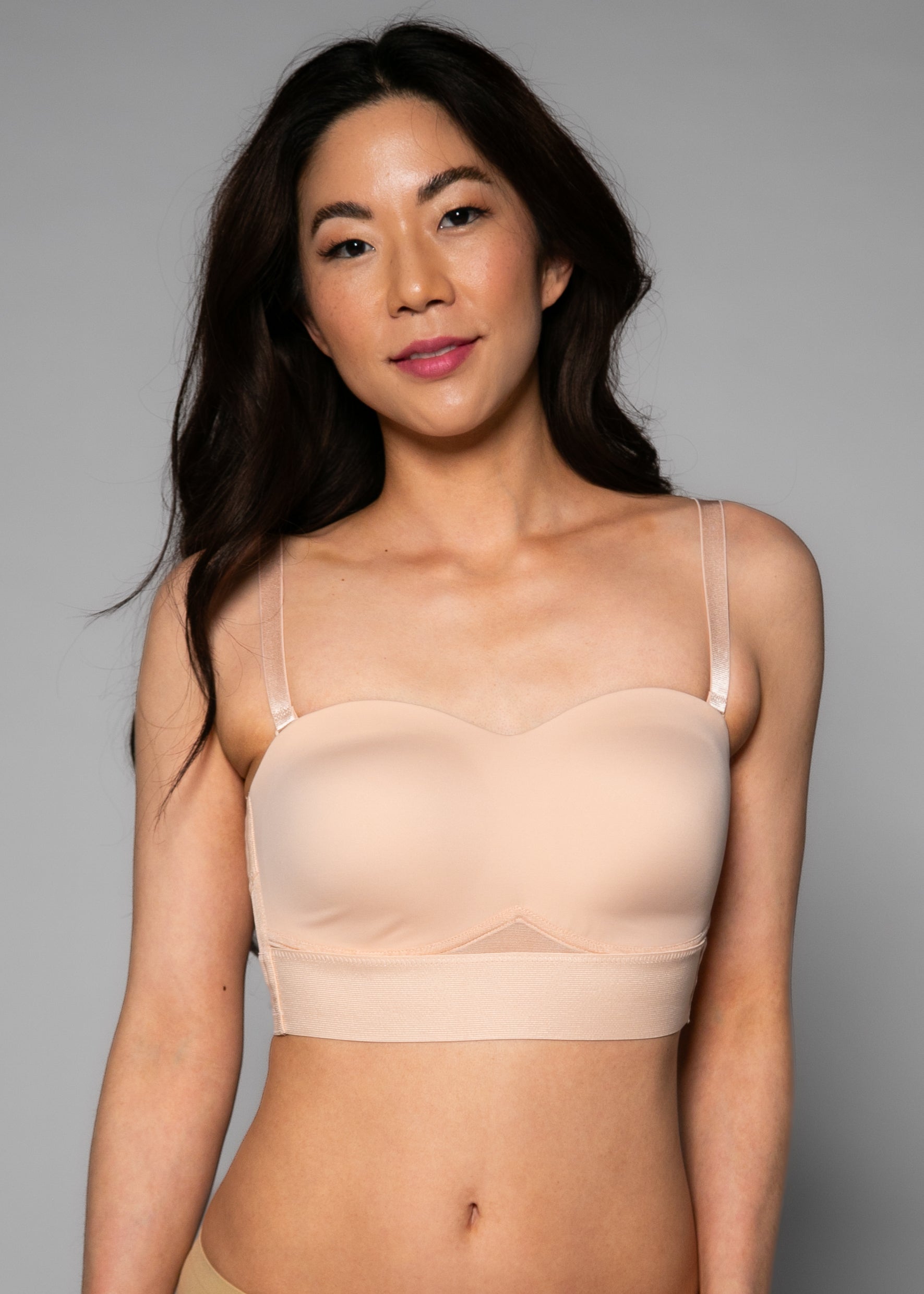 Shape, support, and comfort come together in this versatile wire-free bra from Rhonda Shear. Designed with flexible molded foam cups, this strapless bra helps define your curves while providing a smooth, supportive fit. The front padding and side boning help maintain structure and prevent collapsing, while the silicone-lined back elastic helps keep it securely in place. Wear it strapless with your favorite dresses and tops, or attach the removable straps for multiple styling options.