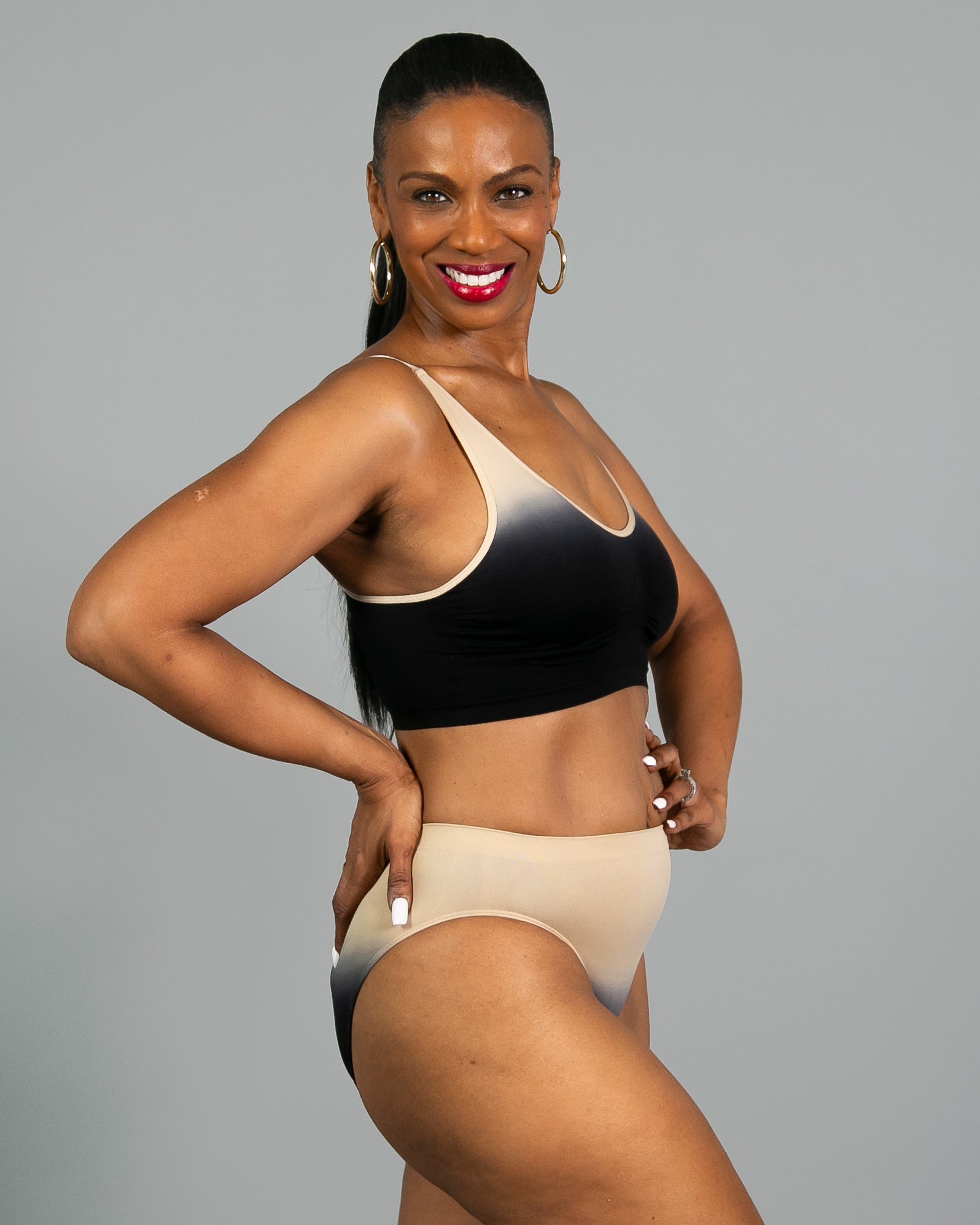 With its adjustable straps, pocket design with removable pads, and wide smoothing back, the Ahh Seamless Ombre Bra delivers Rhonda Shear’s signature comfort with a modern, customizable twist — because your unique shape deserves a bra that fits just right.