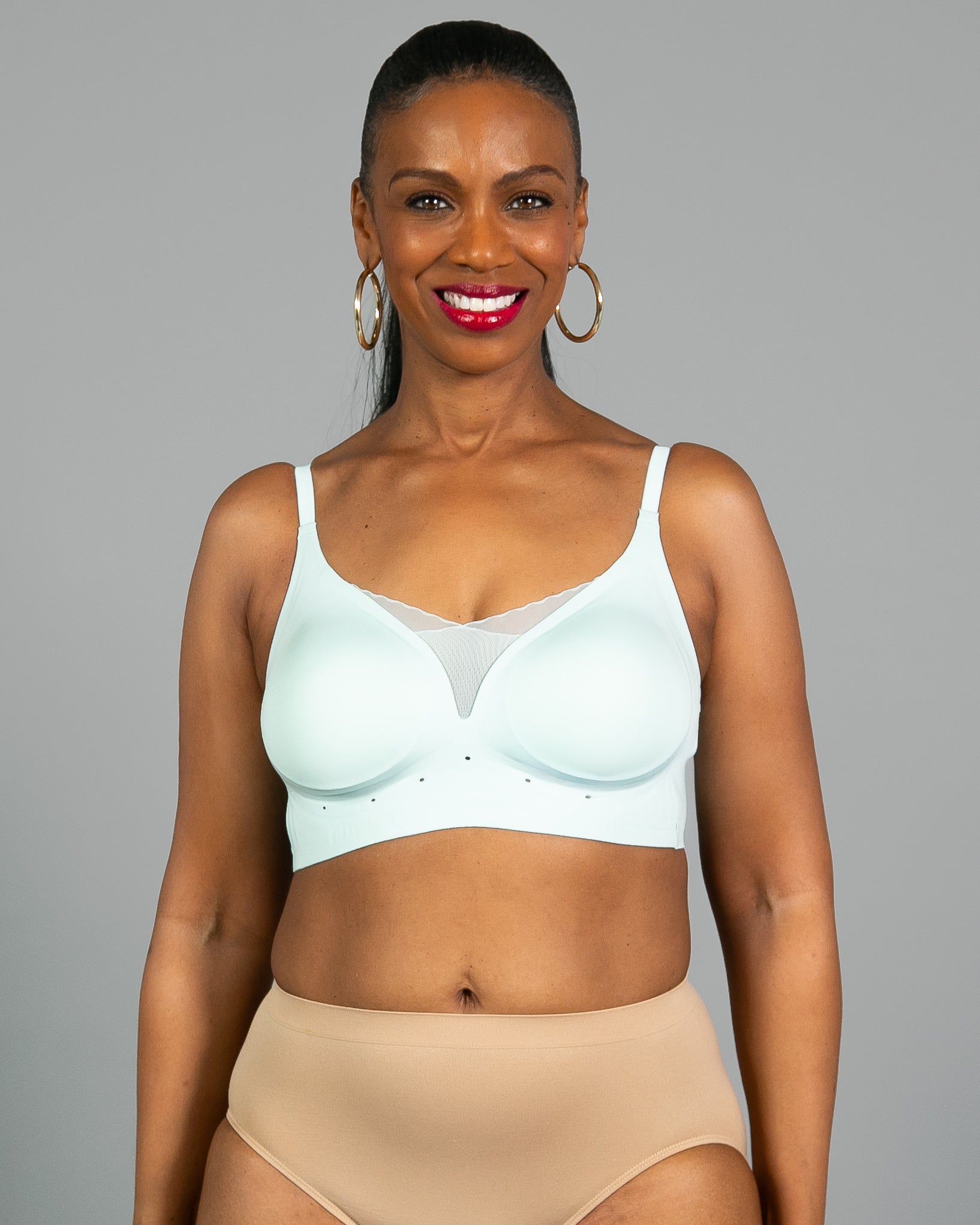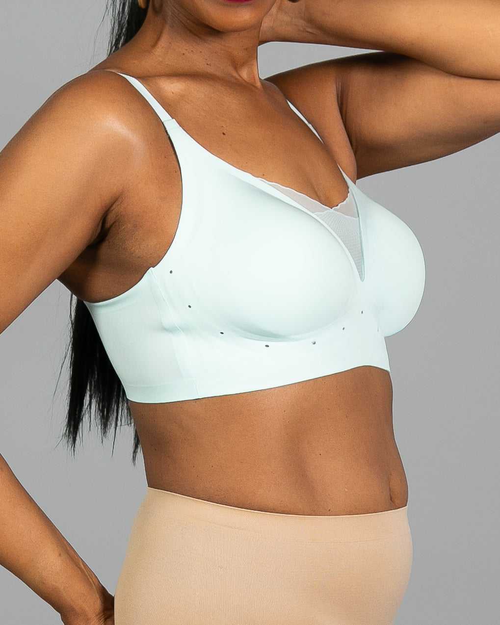 V Neck Seamless Bra with Lace Overlay - Final Sale